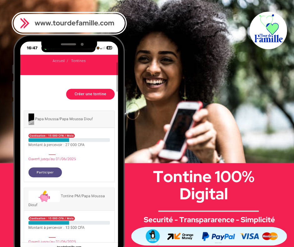 Participe à une tontine simple, sécurisée, transparente avec des proches de confiance.